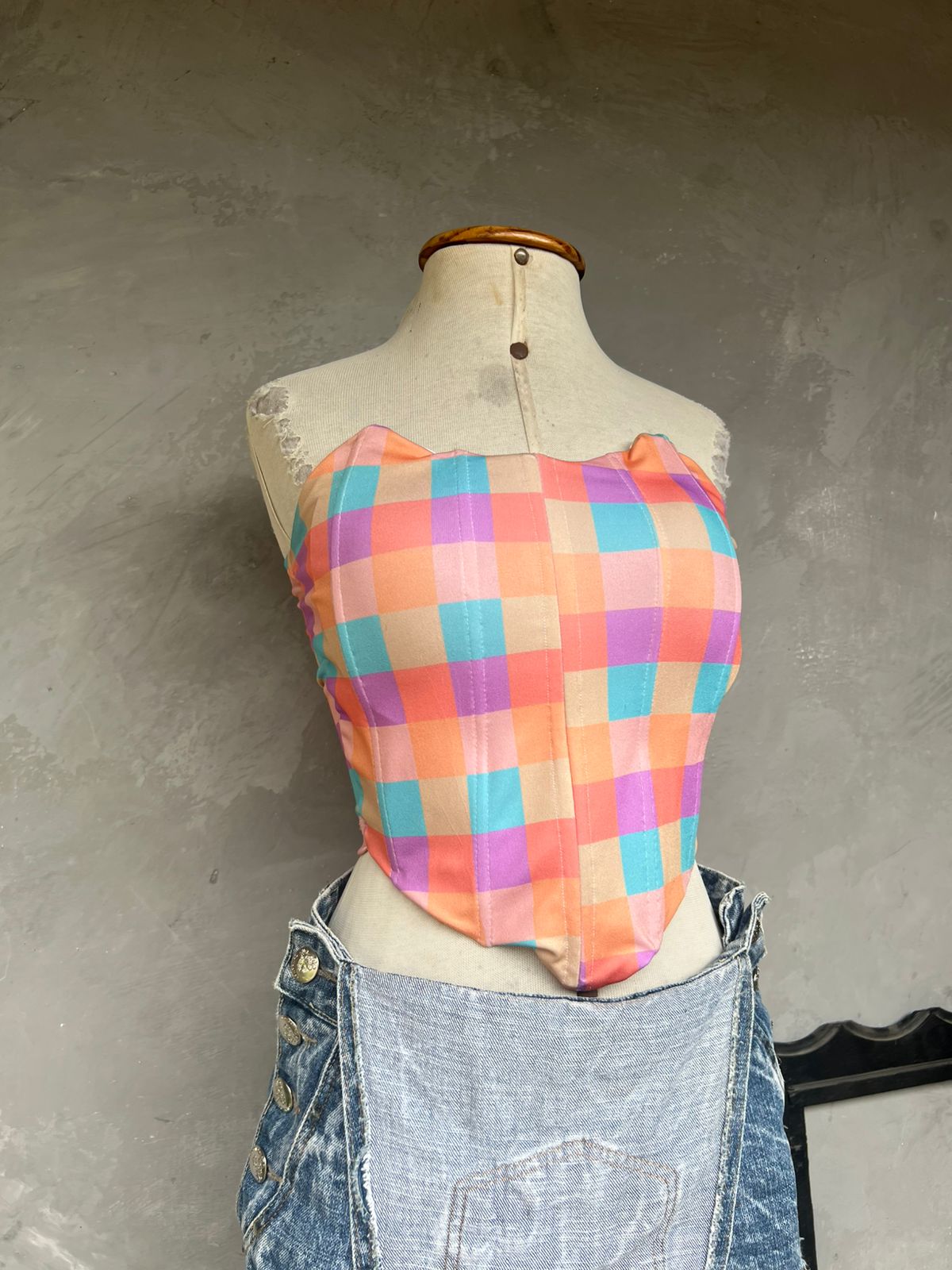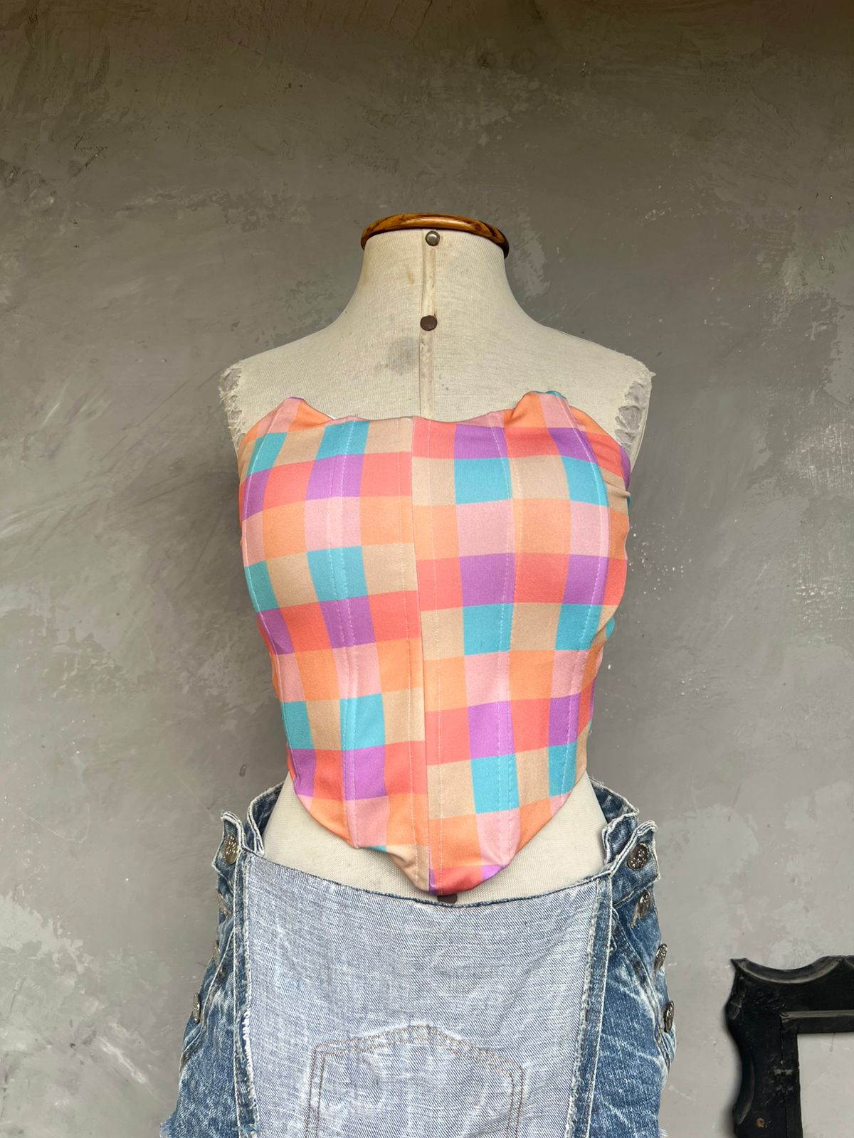 Corset Quadriculado Tons Pastéis (M)