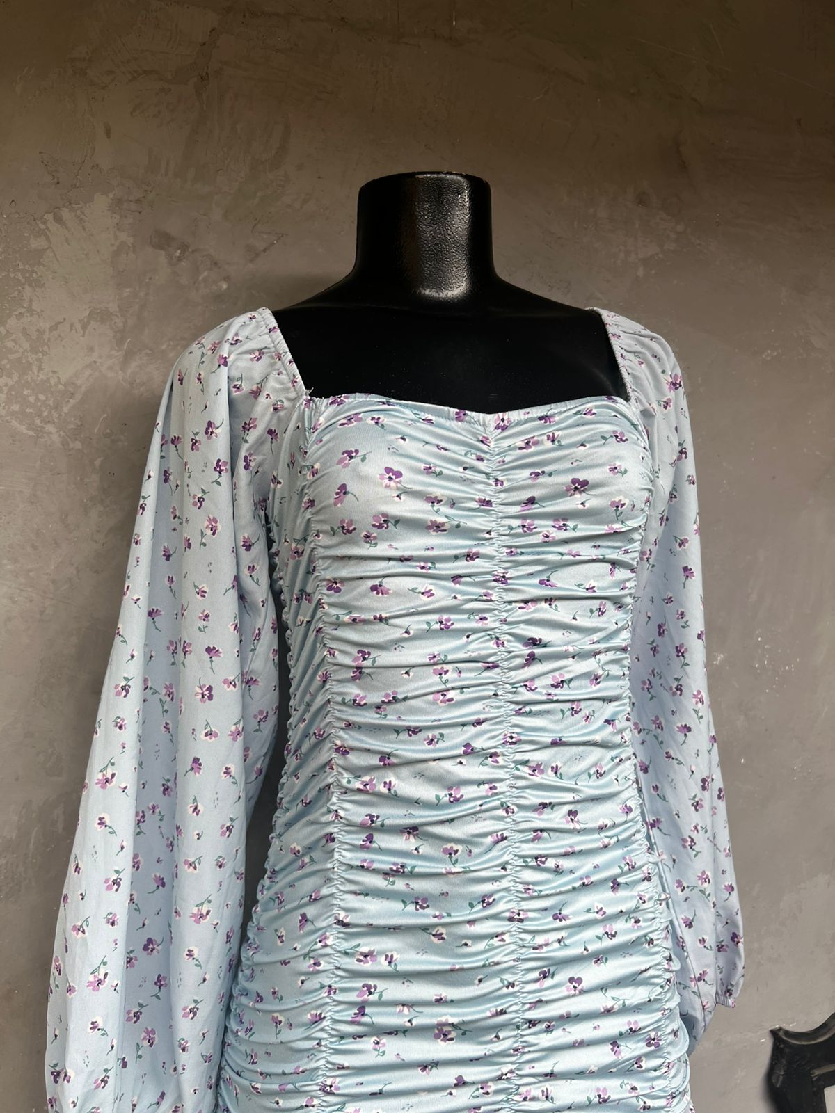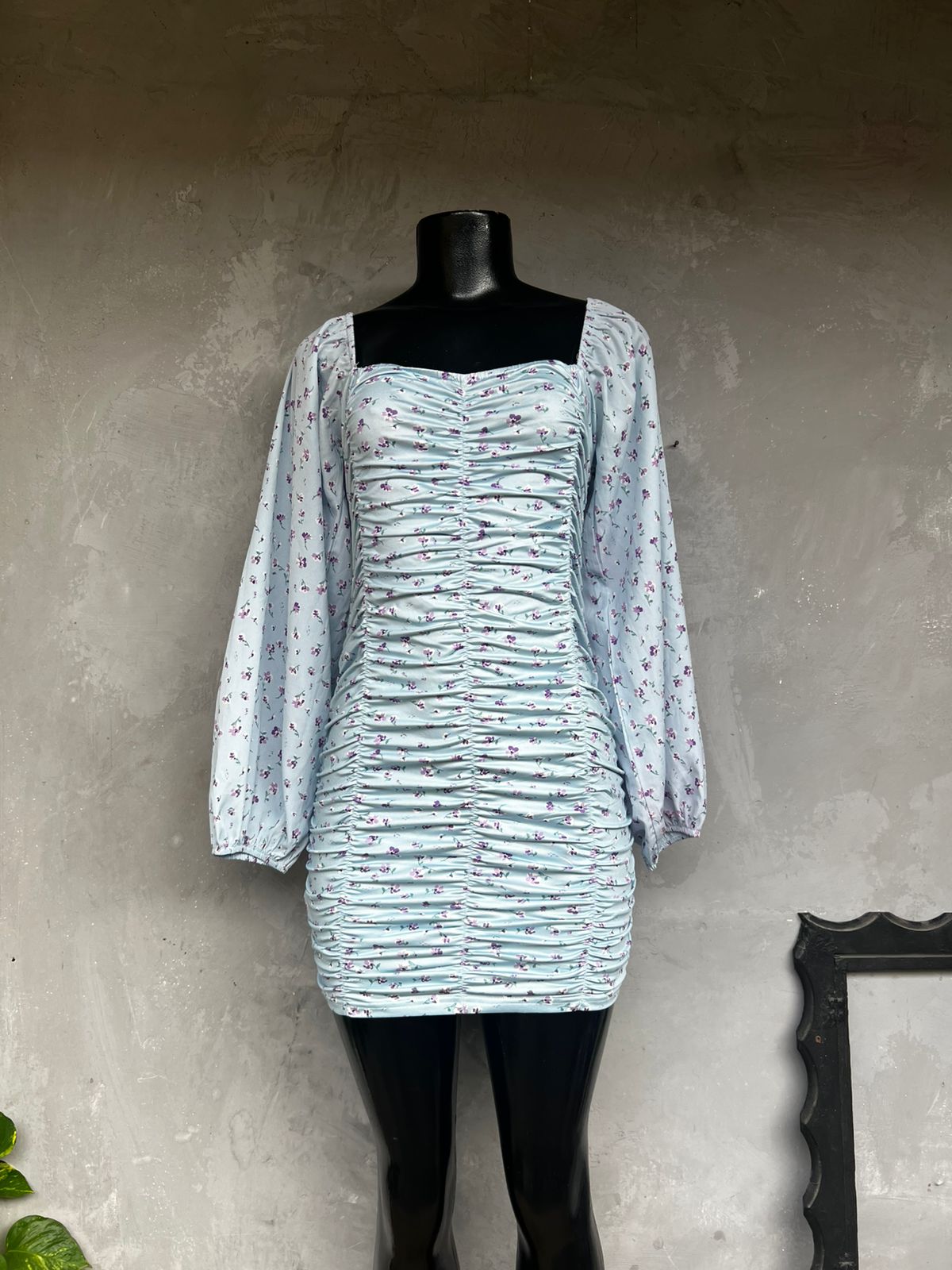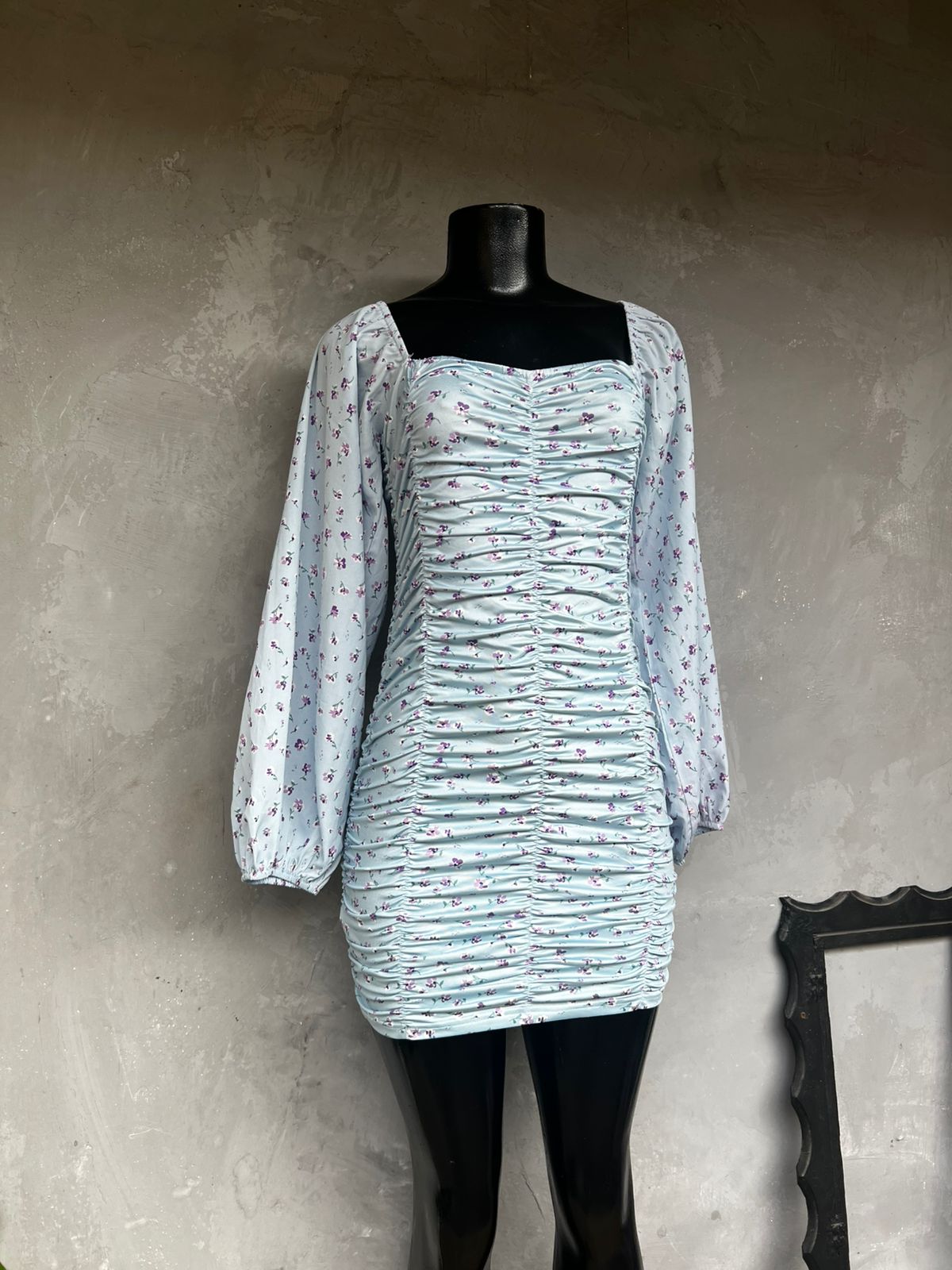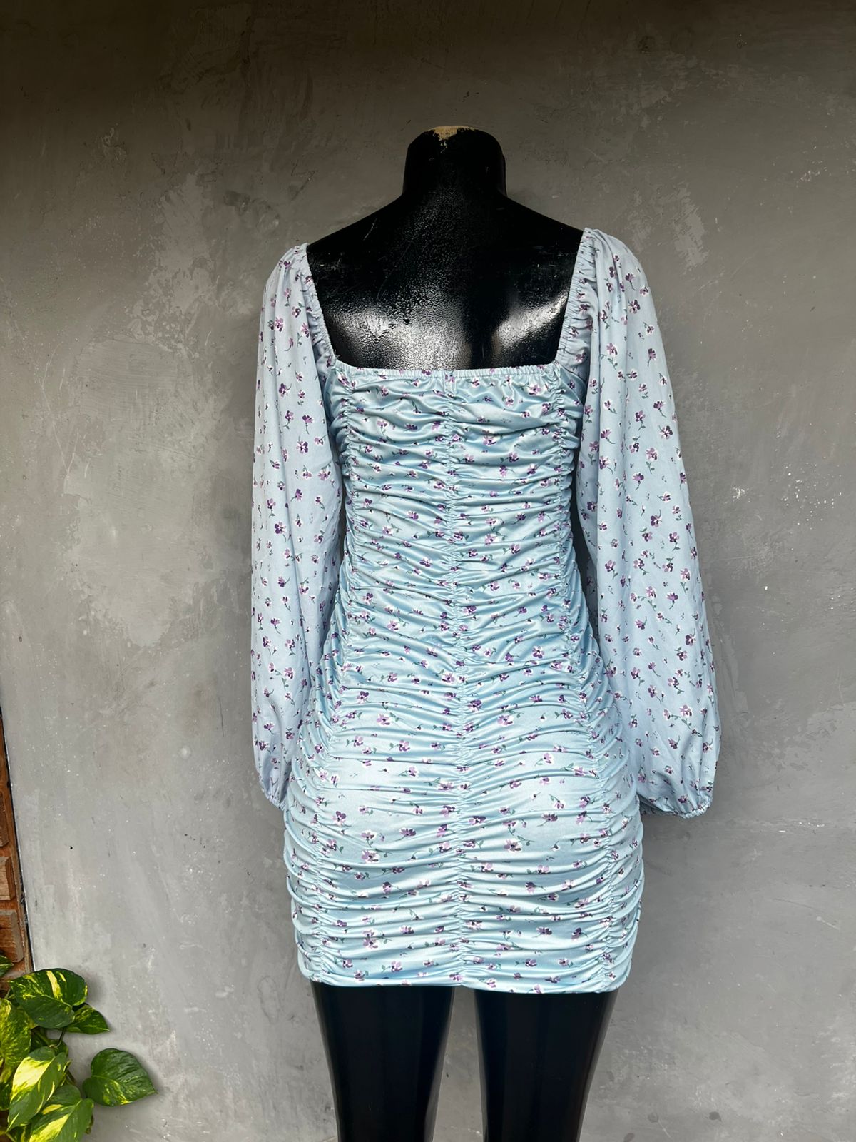 Vestido Azul Floral Lastex (38)