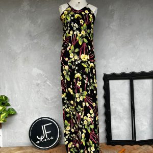Vestido Preto Floral Vermelho/Verde (M)